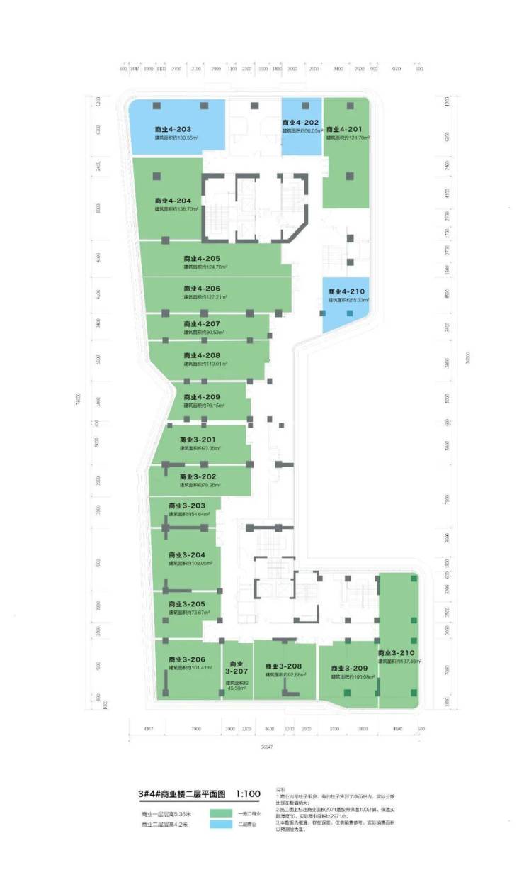 且商业一层层高5.35m(可分隔双层使用),商业二层层高4.2m,小到奶茶店、便利店,大到服装店等,可以满足多种业态的要求。