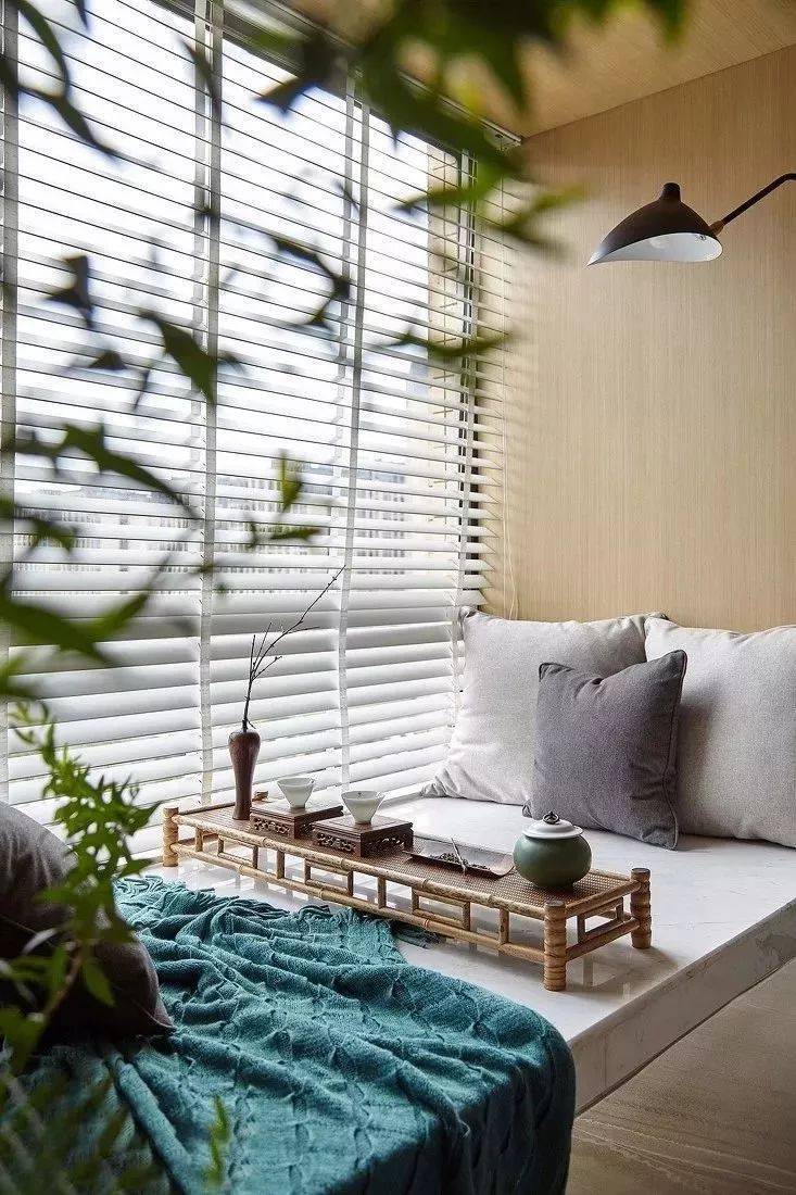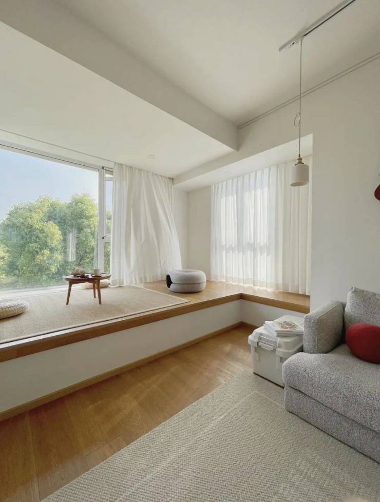 在设计时可以采用木质飘窗台和窗套一起搭配,打造出一方自然、静谧之所。