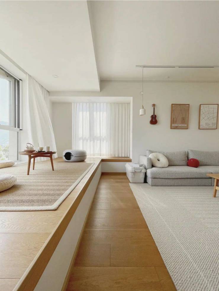 在客厅则可以将其作为沙发或小型茶室,空间开阔性好,同时能够满足日常接待好友的需求,一家人在家时也有了更多的互动空间。