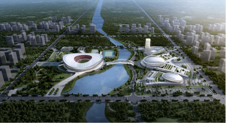总投资76亿元,占地1218亩的奥体中心预计2023年竣工,总建面约48万㎡,其中甲级大型体育场,建筑面积约12万㎡,省内较高级别,容纳座位约5.7万个。甲级特大型体育馆,建筑面积约12万㎡,甲级中型游泳馆,建筑面积约4.7万㎡,容纳座位约1577个。全民健身中心建筑面积约14万㎡,羲之文化中心,建筑面积约6.2万㎡,定位为临沂文化新高地。