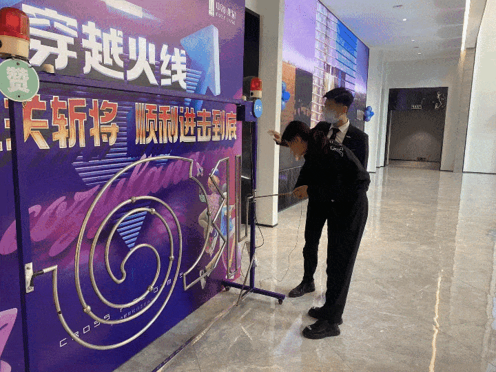 如此惊险刺激又充满趣味的游戏,现场挑战者不断,竞相上场一试身手,有的越玩越紧张,脑门不禁渗出汗,一不留神,手一哆嗦,轨道兹兹作响,一旁观战的人,也是神经紧绷,着实捏了把汗,直到挑战者过五关斩六将,每个人紧张的神情终于放松,大家如释重负长吁了一口气,纷纷为成功通关者鼓掌喝彩。