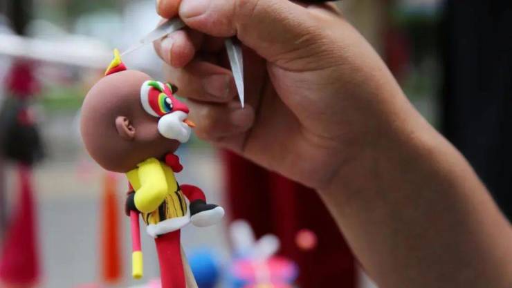捏面艺人根据所需随手取材,在手中几经捏、搓、揉、掀,用小竹刀灵巧地点、切、刻、划,塑成身、手、头面,披上发饰和衣裳,顷刻之间,栩栩如生的艺术形象便脱手而成。