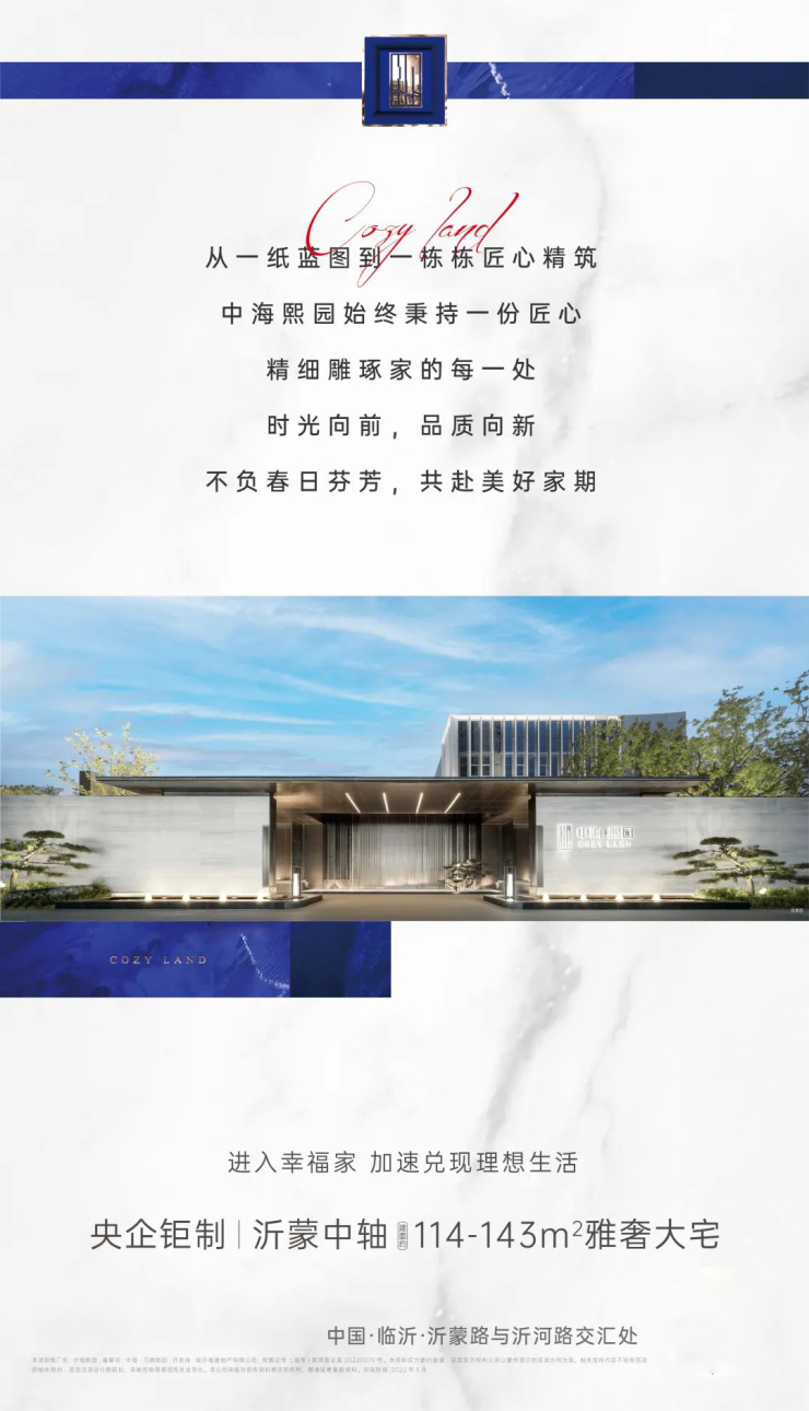 1.本项目推广名为“中海熙园”,备案名为“中海·万锦熙园”。开发公司为:“临沂海晟地产有限公司”。商品房预售证:“(临审)房预售证第20220070号”。2.本资料为要约邀请,不作为要约或承诺。3.相关宣传内容不排除因政府相关规划、规定及出卖人分期规划、未能控制等原因而发生变化。4.出卖人可能会不定期对宣传材料进行修改。5.买卖双方的权利义务以双方签订的《商品房买卖合同》及其补充协议、附件等书面文件为准。6.本资料制作时间为2022年4月1日前的信息,敬请留意较新资料。