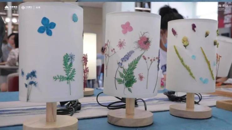 经过构思和设计,保持植物的原有色彩和形态,制作成各种花型图案的装饰,粘贴装裱在台灯表面,呈现一盏独具匠心的压花台灯。