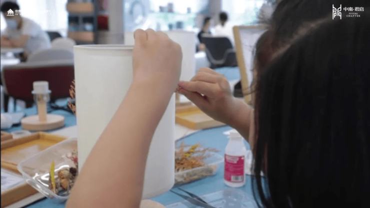 指尖轻抚,雅韵生香,选花草、贴古纸、搭灯架、做古灯,将花草在纸上细细拼接粘贴。