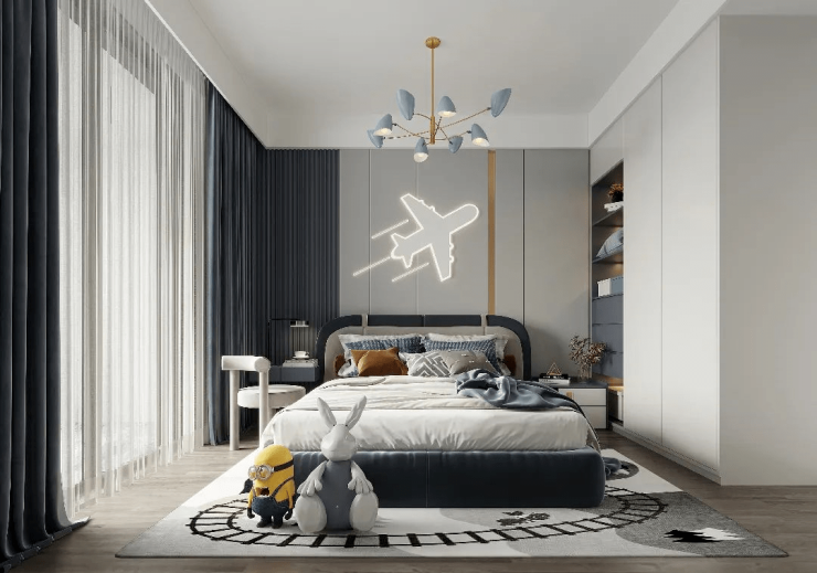 3、折叠门的特点介于平开门和推拉门之间——它可以完全打开,而且不占用衣柜前方的空间。在外观上,它也更加灵活多变,既可以像平开门一样规规矩矩,也可以像推拉门一样灵活多变。