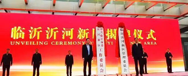 揭牌仪式由临沂市委副书记、沂河新区党工委书记张宝亮主持,临沂市委书记任刚,市委副书记、市长侯晓滨为临沂沂河新区党工委、管委会揭牌。