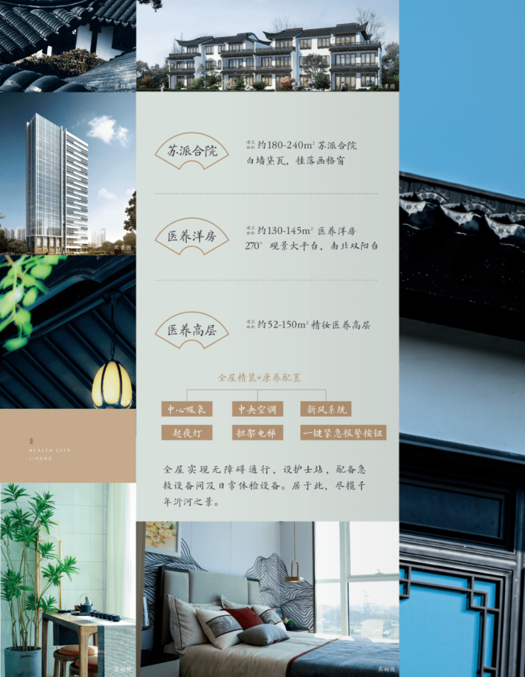 做为沂河新区重点建设项目之一,利恒健康城项目按照国家康养标准规范要求设计,优化空间分区,丰富配置功能,严苛施工工艺,提供精装修交付。配备“医疗+物业”双管家,具备一键吸氧、一键呼救功能,24小时贴心呵护入住业主的身心健康,可满足入住业主医、养、康、护、旅、乐、学、居等多元需求,打造全新的高品质、旗舰型医养健康生活社区。