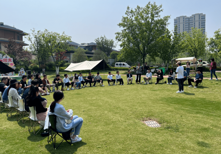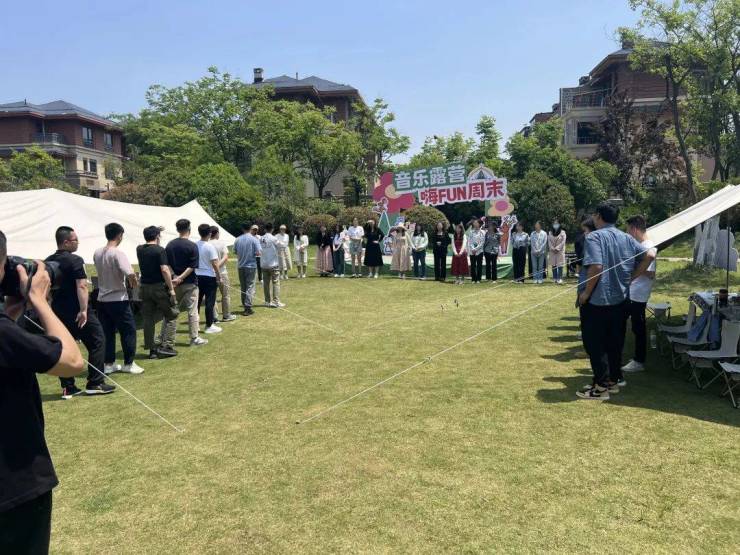 自我介绍、丢手绢、喊数抱团、才艺展示,在一个个美好的游戏环节中,年轻的朋友在桃花源,放下工作负担,一起露营,一起做游戏,沉醉在美好的大自然中。