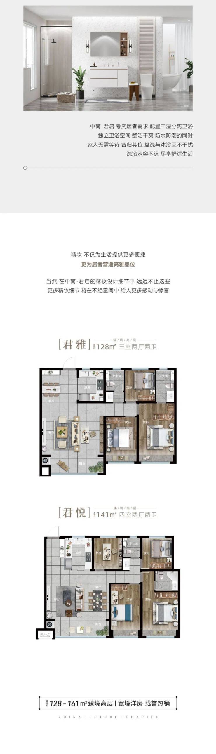 本宣传资料所涉及的户型仅供示意参考,其装修、家具、陈设等非交付标准,不属于交付范围。不同户型的面积尺寸,功能布局,空间分割、门窗/管井形态位置等均有不同;相同户型因楼栋、楼层、单元等差别,局部结构、面积等也可能不同,本宣传资料中宽度及进深尺寸均为轴线尺寸,具体以政府部门最终审定的图纸和销售合同为准。