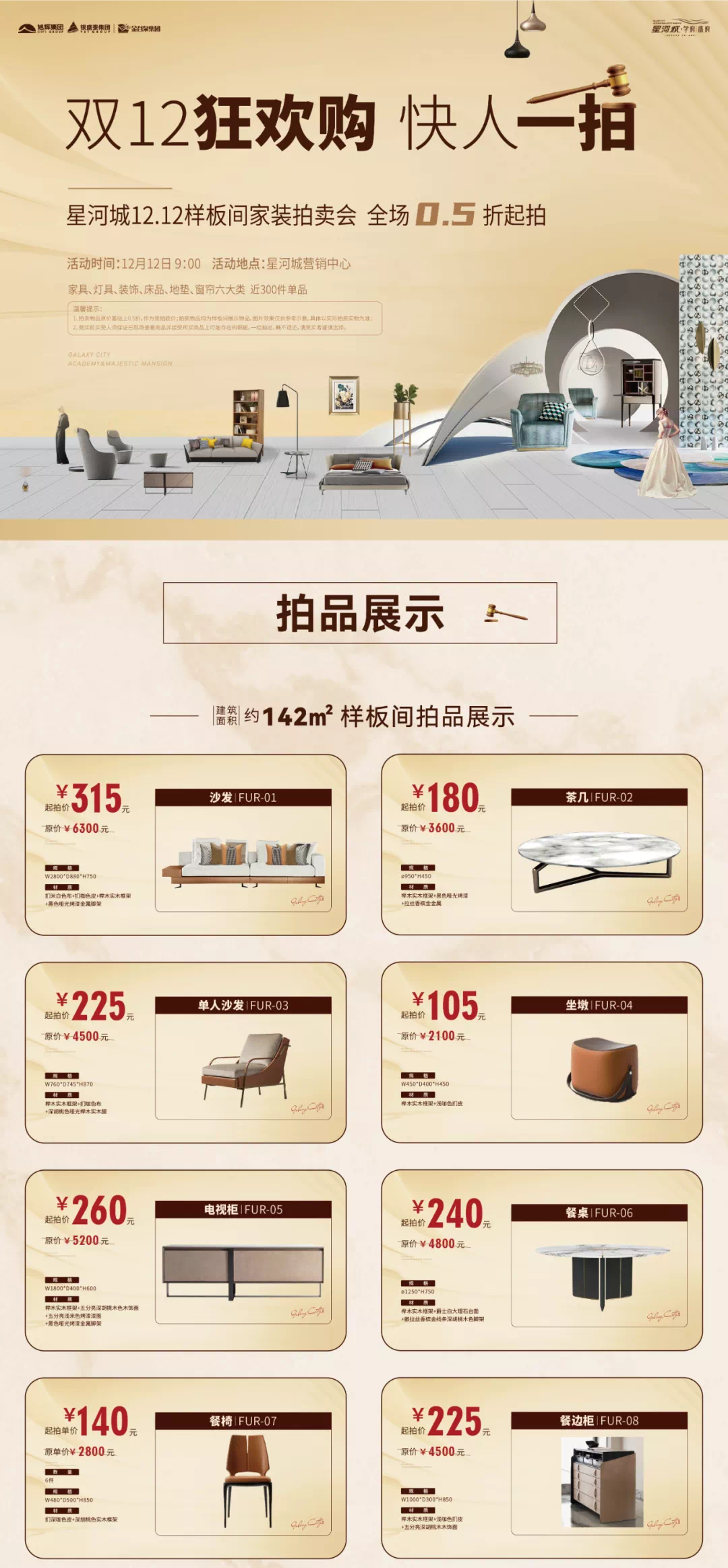 星河城12.12样板间家装拍卖会,全场0.5折起拍!