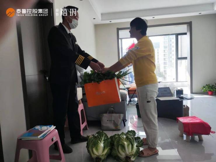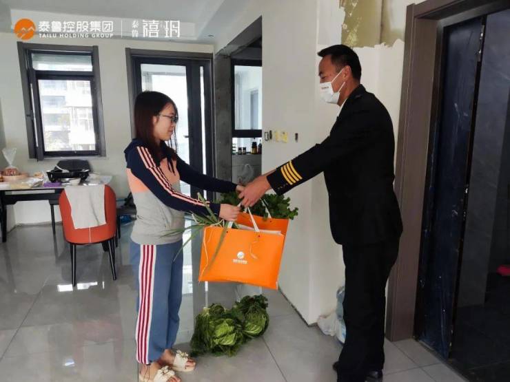 在疫情封控期间,为保障居家隔离业主生活物资需求,泰鲁物业将刚从泰鲁有机蔬菜基地采摘的新鲜蔬菜,挨家挨户送到业主手中,并询问是否有其他需求,物业将尽较大努力提供帮助,为业主建起一个有依靠的家。