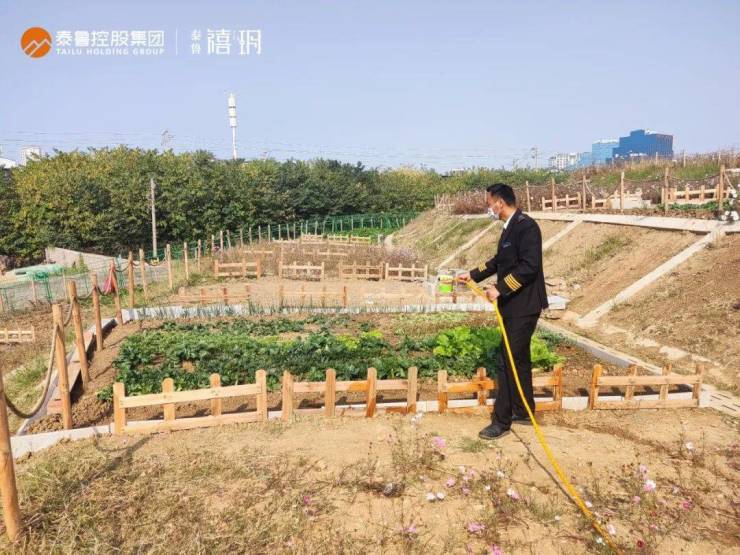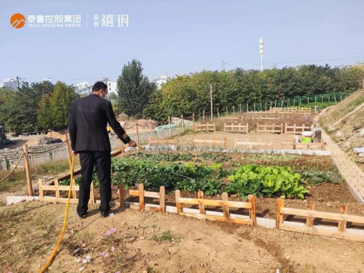 部分禧玥业主的私家菜园蔬菜长势喜人,因业主封控在家无法照料,物业人员化身“公益农夫”,义务为所有已种蔬菜的菜地浇水,等到业主解封时便可以采摘自家的有机菜。