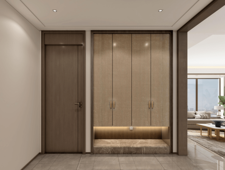 入户玄关在家庭中是非常实用的存在,既是室内空间有序转换的入口节点,让日常出入有了缓冲空间,同时对户外视线产生视觉屏障,不至于开门见厅,保障室内空间的私密性。再者还可以起到收纳空间的作用。独立安静的建筑空间能赋予生活较大的自由,带给居者舒适的归家体验。回家随手放置的鞋子、口罩、雨伞、快递、外出衣物都能收纳存储,让日常出入所需物品井井有条。还能起到净污分离的作用,这在疫情期间尤为珍贵。
