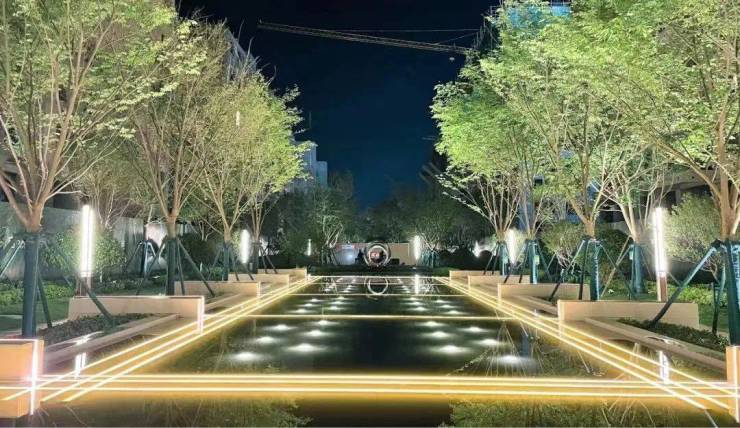 灯光、复古雕塑、名贵石材、珍稀花木、浪漫水景等相映生辉,配合休憩与玩乐空间,围合幼年、青年、老年不同阶段的活动场域,打造城市高端居住区的园林意境美学。