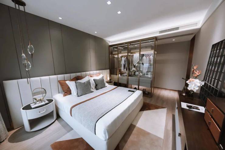 豪森君望通过对现代设计风格的研究,打造“一街三口六轴十院落”的园林规划,森居生活,礼序卓然,更显名门气度。