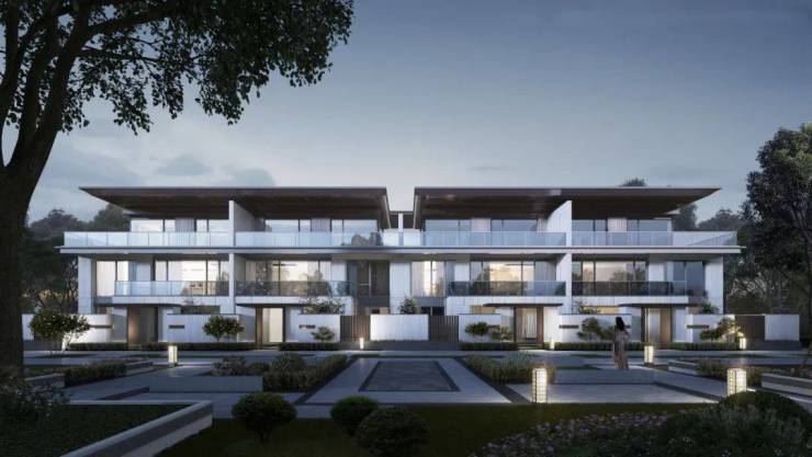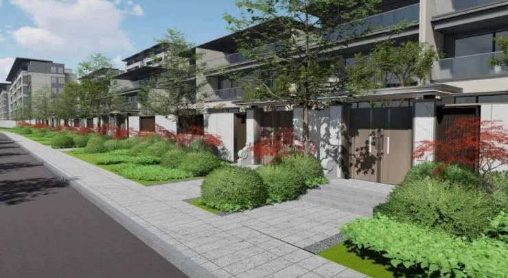 泰鲁·时代城体育公园北侧沿路一排泰鲁院子,双路径归家,出入皆享尊贵私密。