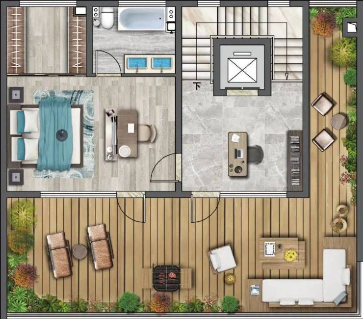 顶层超大户外露台,既是全家人的多功能生活场,也是独自相处的社交避风港,火锅、烤肉、啤酒、茗茶、观景、星空,热闹喧嚣和安静惬意,都在一念之间。