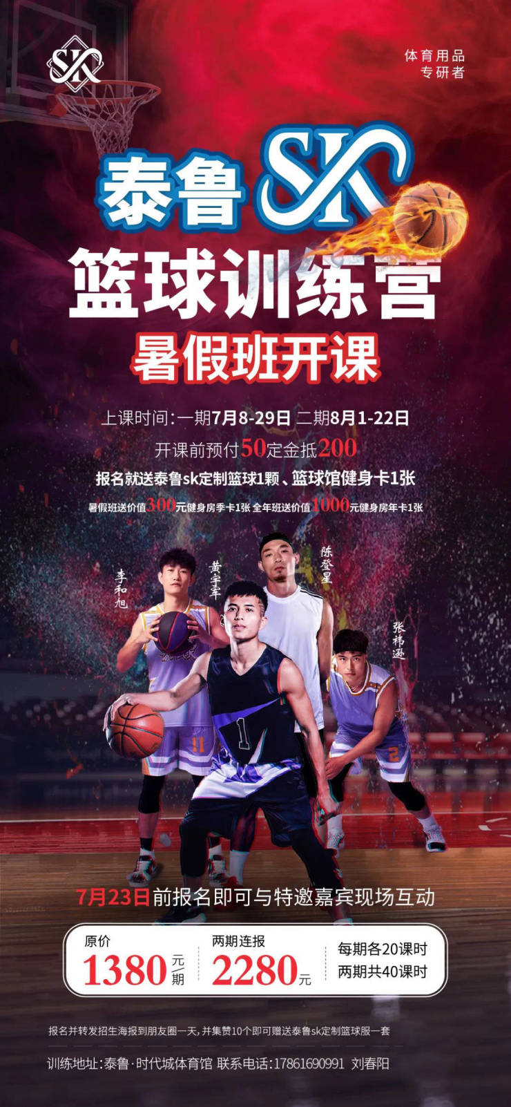 2.报名即送泰鲁SK定制篮球1个、篮球馆健身卡1张;