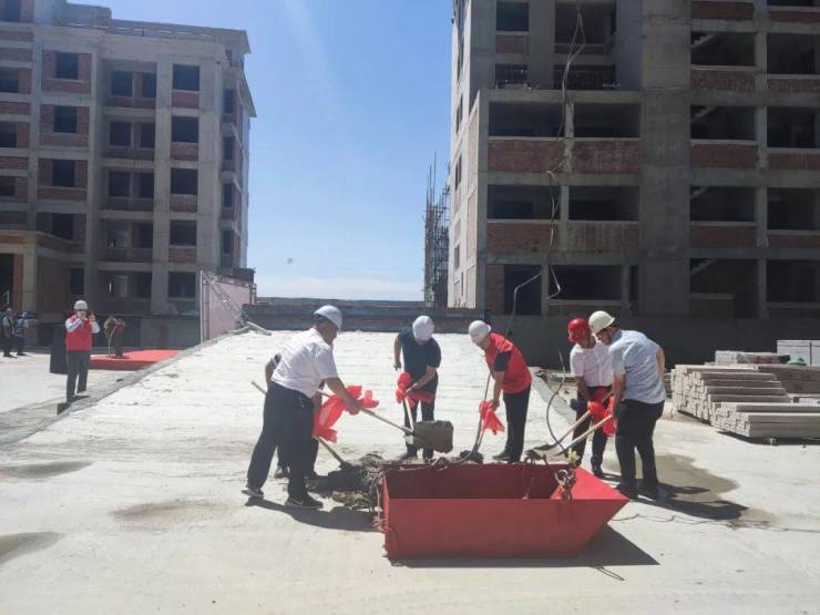 在激扬的音乐中,项目各方领导共同上前为 项目 封 顶 添最后一铲 沙,伴随 着 塔 吊上楼、 礼炮齐鸣,恒弘城众望府封顶仪式圆满完成。