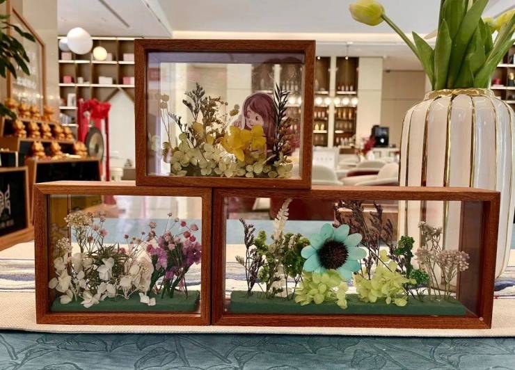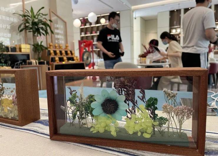 去膜、取花、贴胶、上盖,充分发挥想象力设计花朵的排列布局,重新赋予花新的生命,让美好的瞬间定格成永恒。