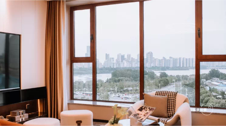 御澜九府以断桥铝型材搭配三玻两腔中空玻璃,更具隔音、保温、节能功效!