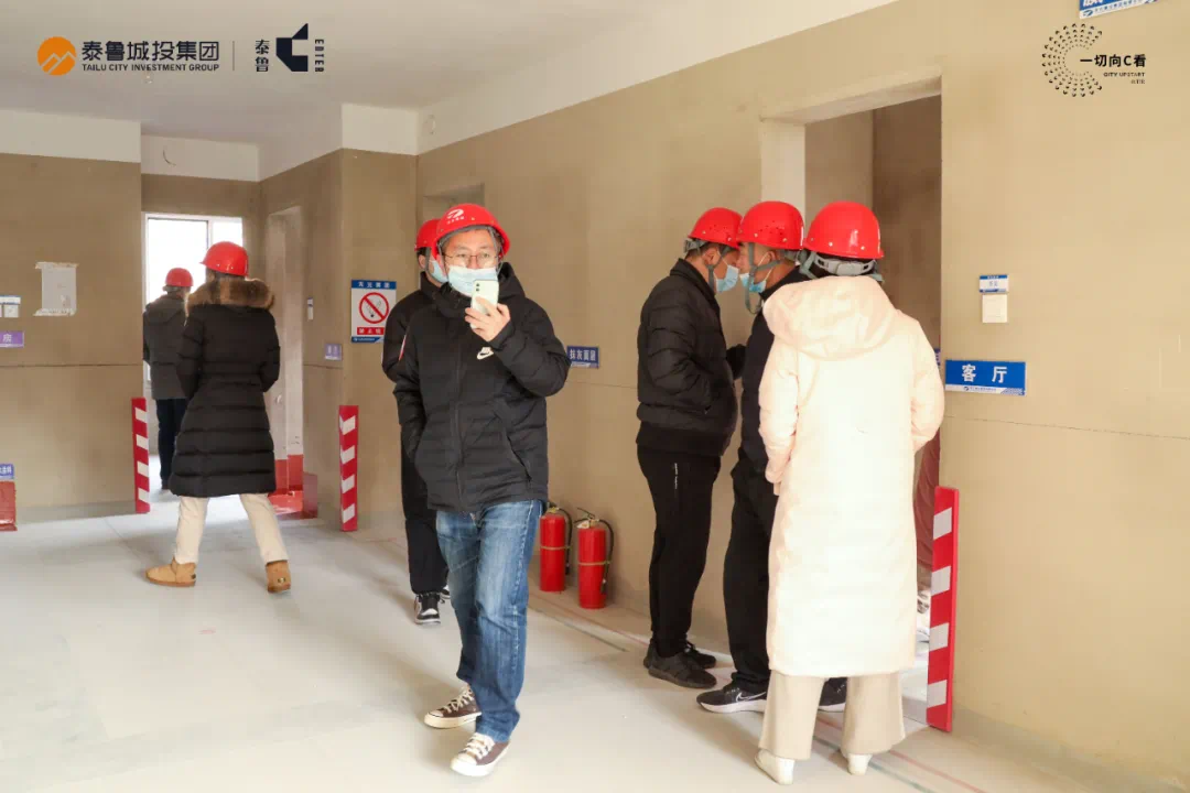 1月17日上午9点,“心归家至 悦鉴不凡”泰鲁C工地开放日活动如期举行。泰鲁C业主与媒体朋友如约而至,共同鉴证新贵人居的筑造过程。泰鲁C项目总经理王名祥、泰鲁城投集团金融管理中心总监许磊、泰鲁城投集团开发合作中心总监黄成龙、泰鲁城投集团成本管理中心总监田国、泰鲁城投集团招标采购中心总监刘聪、泰鲁城投集团审计中心副总监孙云超、泰鲁城投集团营销管理中心副总监安鹏、泰鲁城投集团人力资源中心副总监王桂香、泰鲁城投集团装饰部副总监赵鹏、泰鲁城投集团研发设计中心副总监杜乾、泰鲁城投集团物业副总监郑晓宇、泰鲁·时代城项目总经理周泉、泰鲁·禧玥兼泰鲁·盛湖活力城项目总经理李明、泰鲁C工程总监田伟出席本次泰鲁C工地开放日活动。