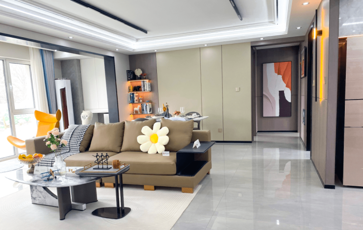 奢阔客厅,可以是爸爸的书香茶室,半躺沙发之上,沉浸阅读时光;可以是妈妈的插花手工区,阳光熹微的午后,一杯摩卡、一束鲜花,流转优雅时刻。