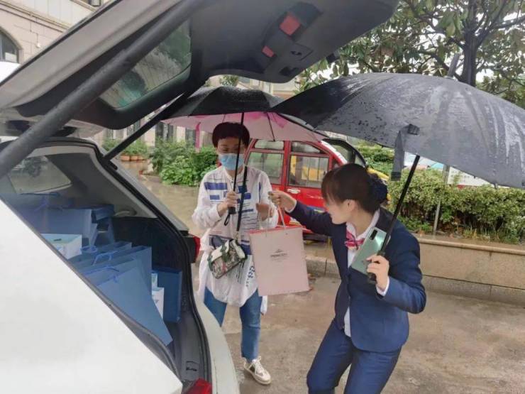 为了让小业主们拥有升学的仪式感,即使下雨天,亦或开学前的晚上11点,物业人员依然穿梭在市里各个小区,将开学礼送到每位绿城家人的手中。
