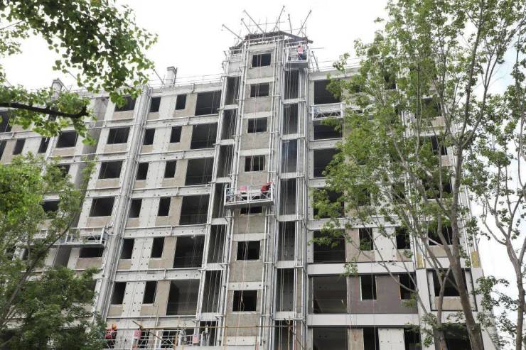 为确保施工品质,华瑞城全程精细化管控,随着外装样板的确认,现已全面进入外装施工阶段。目前,17#楼、18#楼龙骨已全部完成,焊缝处理也验收完成,进入面层施工的冲刺阶段。