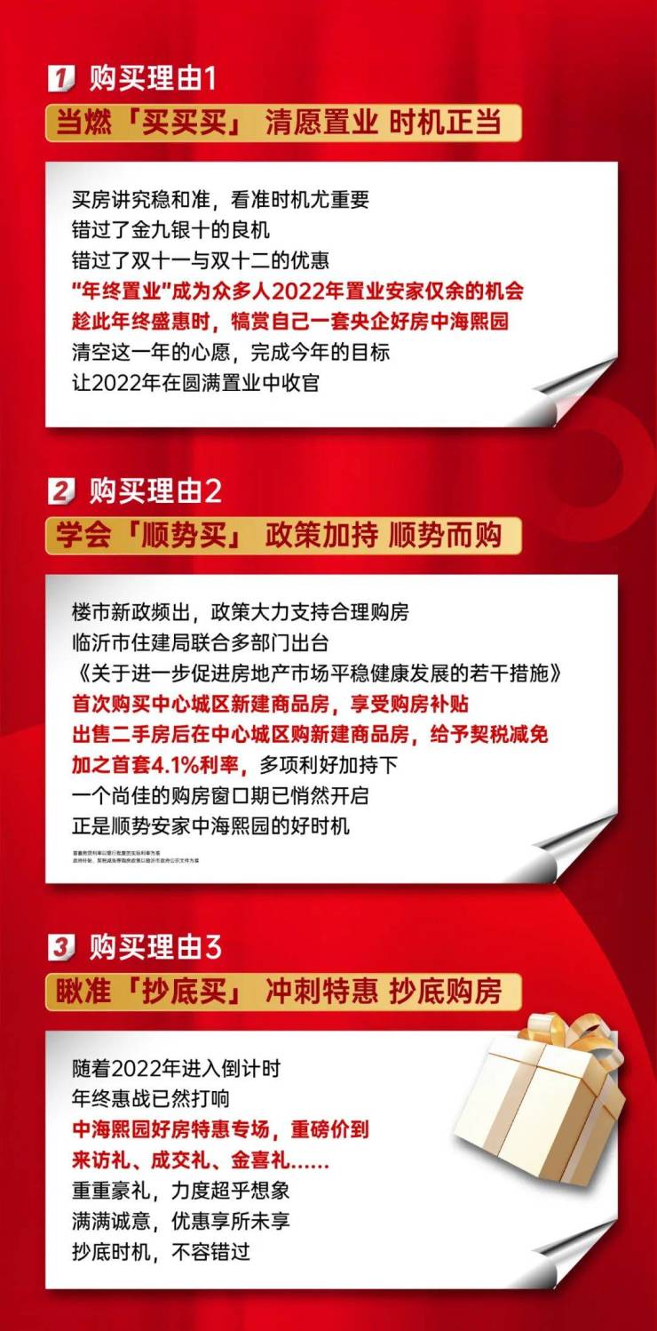 1. 本 项 目 推 广 名 为 “ 中 海 熙 园 ” , 备 案 名 为 “ 中 海 · 万 锦 熙 园 ” 。 开 发 公 司 为 : “ 临 沂 海 晟 地 产 有 限 公 司 ” 。 商 品 房 预 售 证 : “ ( 临 审 ) 房 预 售 证 第 2 0 2 2 0 0 7 0 号 ” 。 2 . 本 资 料 为 要 约 邀 请 , 不 作 为 要 约 或 承 诺 。 3 . 相 关 宣 传 内 容 不 排 除 因 政 府 相 关 规 划 、 规 定 及 出 卖 人 分 期 规 划 、 未 能 控 制 等 原 因 而 发 生 变 化 。 4 . 出 卖 人 可 能 会 不 定 期 对 宣 传 材 料 进 行 修 改 。 5 . 买 卖 双 方 的 权 利 义 务 以 双 方 签 订 的 《 商 品 房 买 卖 合 同 》 及 其 补 充 协 议 、 附 件 等 书 面 文 件 为 准 。 6 . 本 资 料 制 作 时 间 为 2 0 2 2 年12 月25 日 前 的 信 息 , 敬 请 留 意 最 新 资 料 。 中 海 服 务 监 督 热 线 : 9 5 1 1 2 。