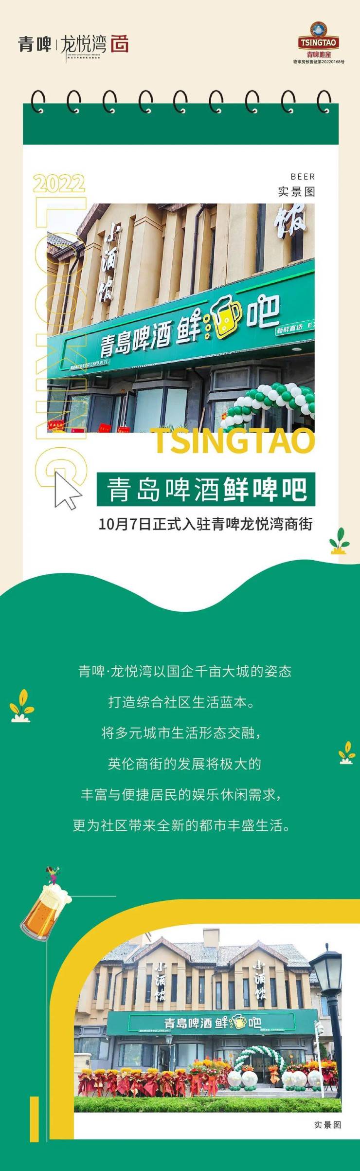 青岛啤酒鲜啤吧10月7日正式入驻青啤龙悦湾商街