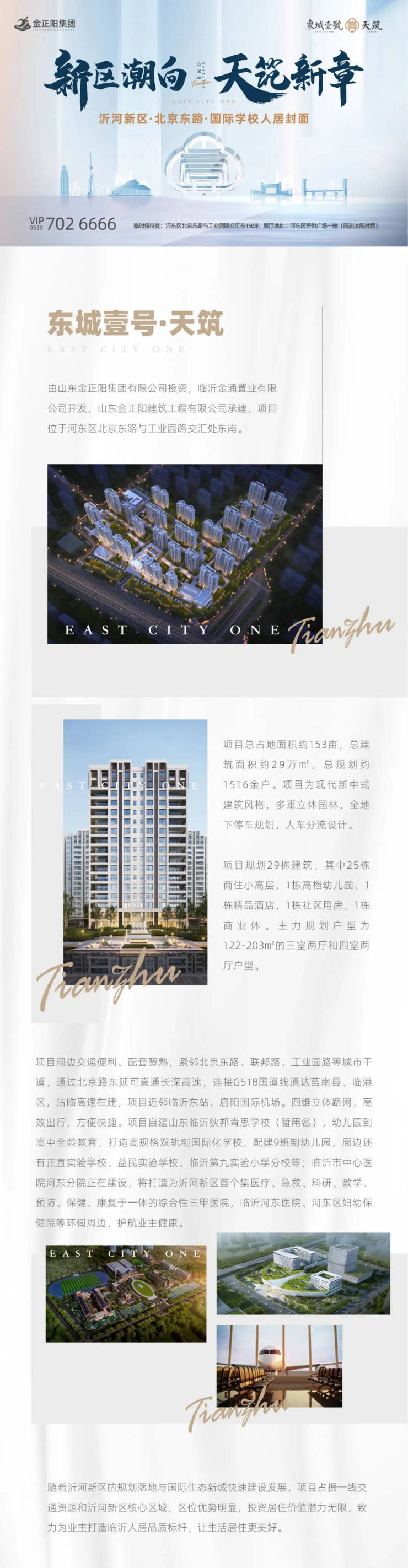 携手绿城,共筑美好!东城壹号·天筑,签约中国服务业500强企业绿城物业,全面输出绿城服务体系,先进管理模式和丰富服务经验,为城市缔造更美好的人居!沂河新区·北京东路·国际学校人居封面,建面约122-203㎡奢适小高,鼎礼临沂人居,恭迎莅临品鉴!